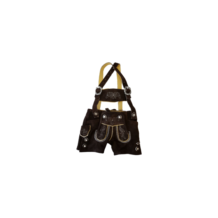 De Kinder Lederhosen Erik is speciaal ontworpen voor jonge avonturiers die willen genieten van traditie en comfort. Deze lederhose is handgemaakt van hoogwaardig rundleer, wat zorgt voor een stevige en duurzame pasvorm. De donkerbruine kleur met contrasterende gele accenten en de verfijnde borduursels geven deze lederhose een traditionele uitstraling, perfect voor feestelijke gelegenheden zoals Oktoberfest of andere buitenactiviteiten.
